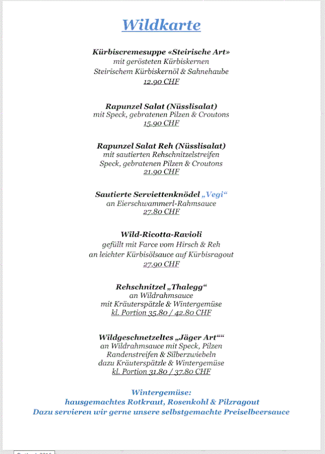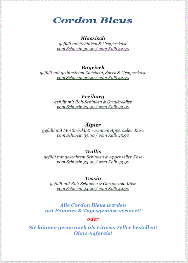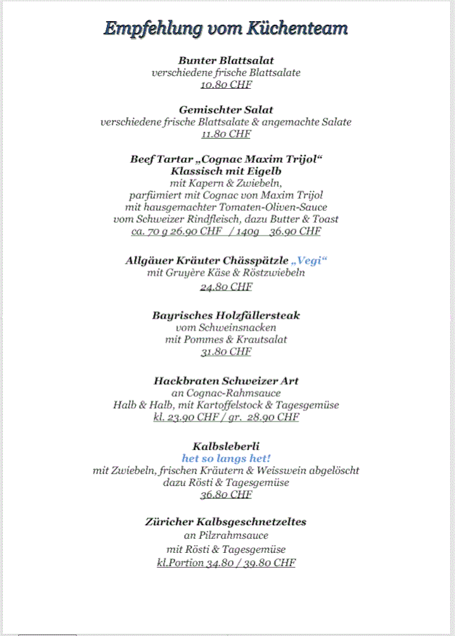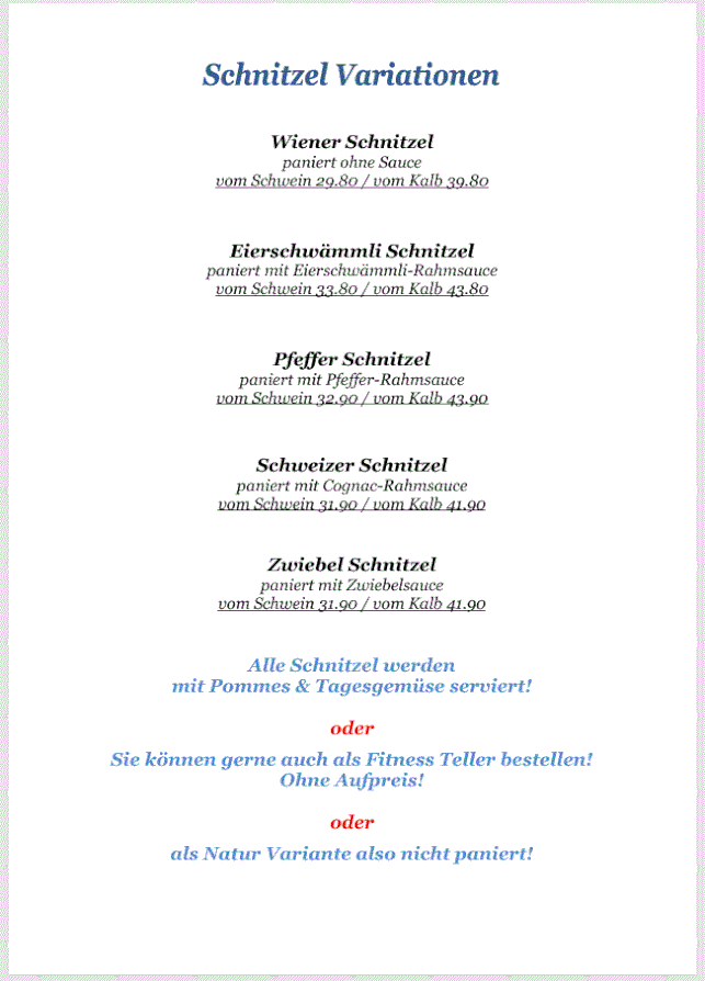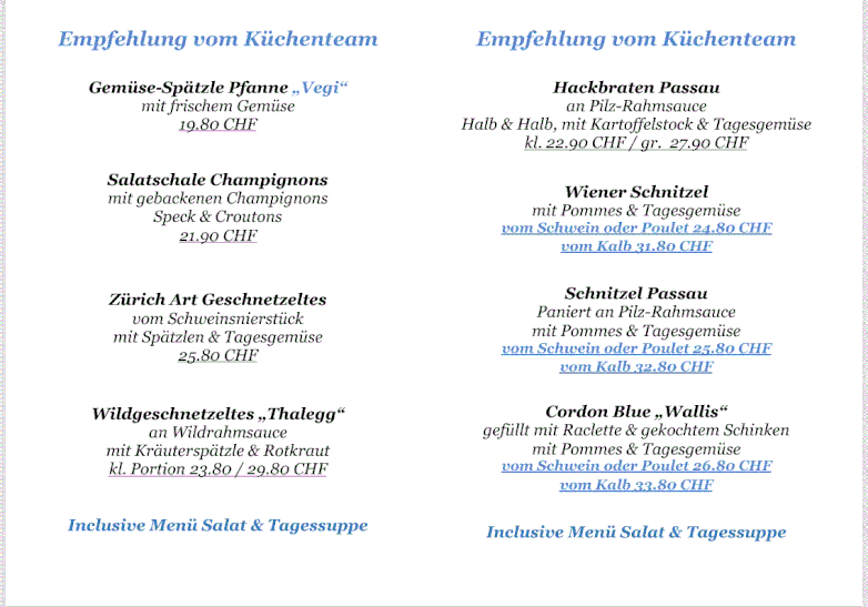 Mittwoch - Freitag Mittagsmenüs von 11.30 Uhr - 14 Uhr