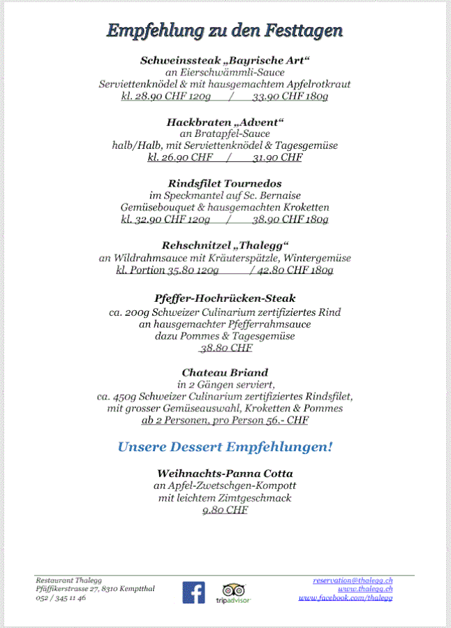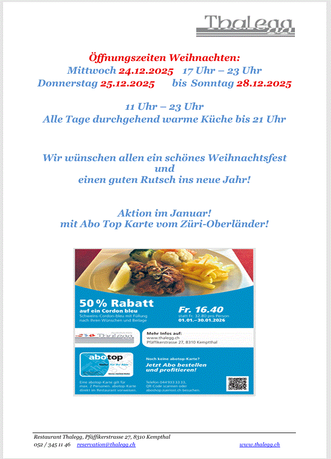 Für kurzfristige Reservationen rufen Sie uns bitte an.