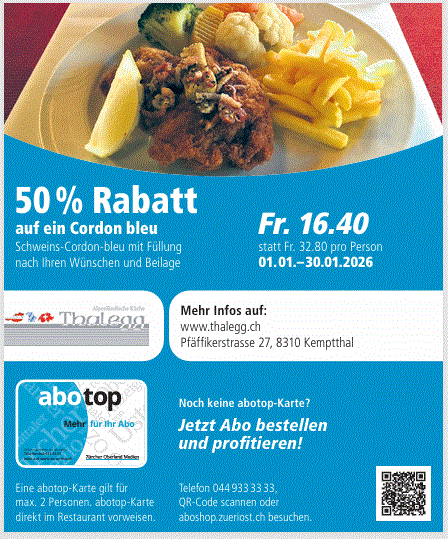 Am Abend verwöhnen wir Sie mit unseren Sperzialitäten wie etwa Münchner Braten, Tafelspitz, verschiedene Cordon Bleu, Züri Geschnetzeltes oder Kaiserschmarrn sowie Knödel.